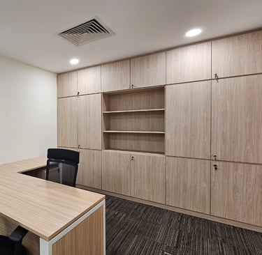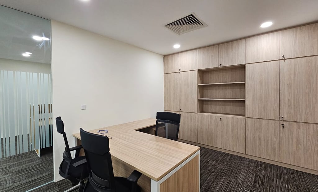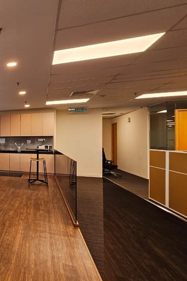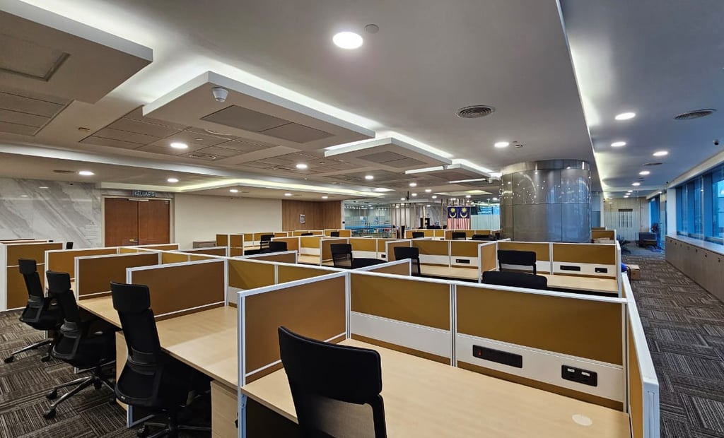 The renovation of Agensi Kaunseling & Pengurusan Kredit (AKPK), a subsidiary of Bank Negara, focuses on creating a warm, comfortable working environment that enhances both productivity and staff well-being. The design incorporates soft, welcoming tones and ergonomic workspaces, ensuring a comfortable atmosphere that promotes efficiency. In addition, a spacious rest area has been designed for staff to unwind and recharge, with cozy seating and a calming ambiance. This renovation aims to provide a balanced space that supports both work and relaxation, fostering a positive, sustainable work culture for AKPK's employees.