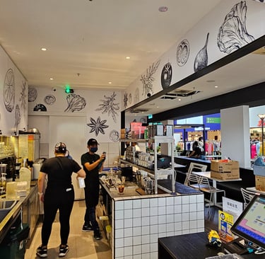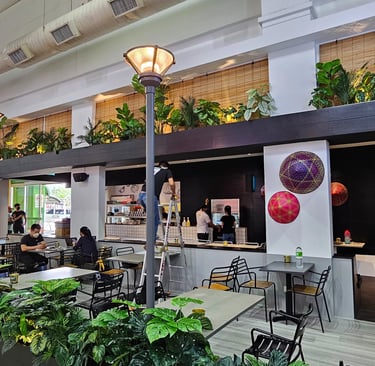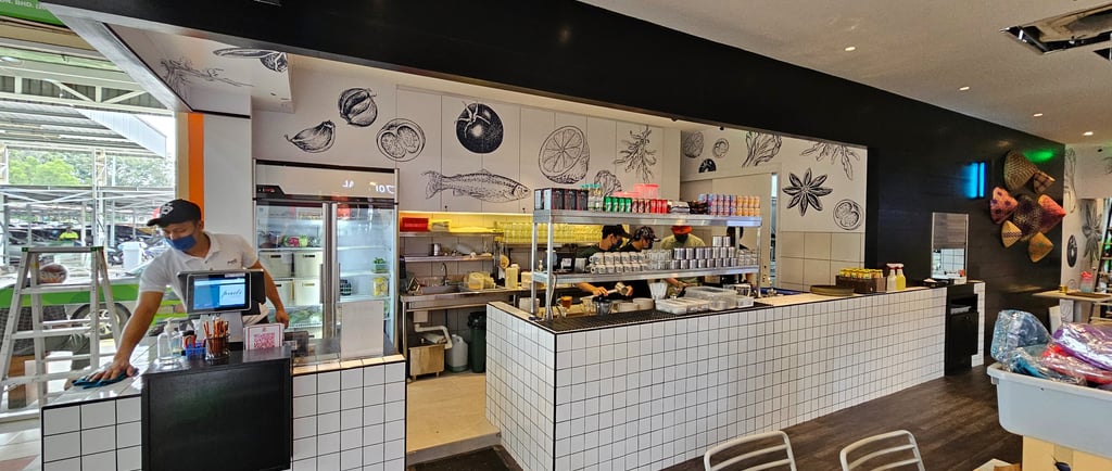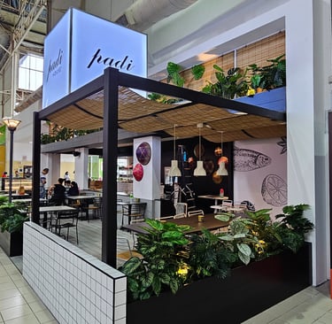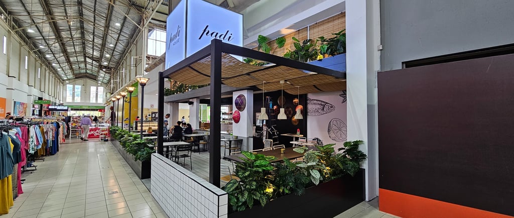 Padi House Cafe offers a unique dining experience that blends Malaysian and fusion cuisine with a relaxed, leisurely atmosphere. The design evokes the tranquil vibe of a paddy field, using natural textures and earthy tones to create a calm, inviting space. With open seating areas, lush greenery, and a soothing ambiance, the cafe is designed to be a perfect spot for casual dining and relaxation. Whether enjoying traditional Malaysian dishes or innovative fusion flavors, guests can unwind in a space that feels both homely and refreshing.