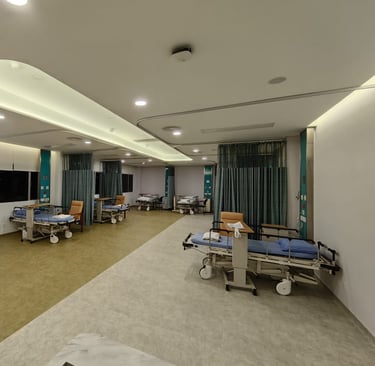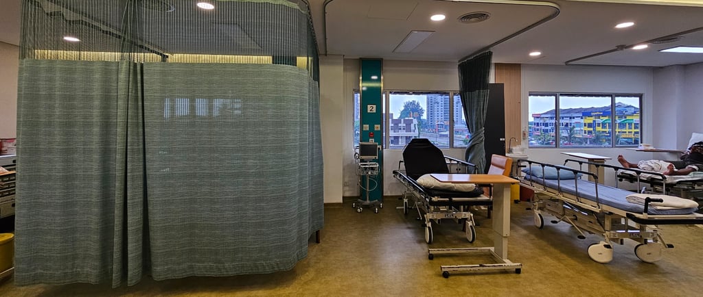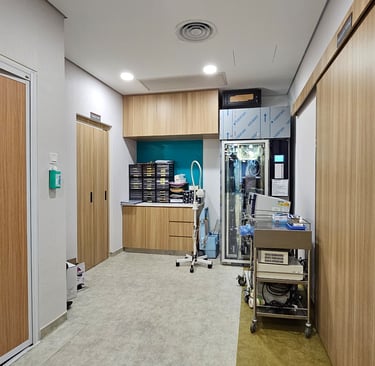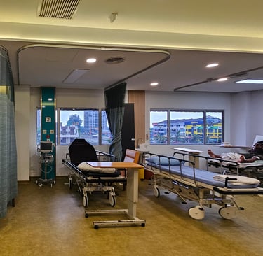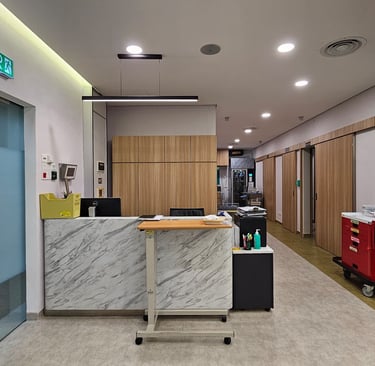 The renovation of Pantai Hospital Klang focused on upgrading the Emergency and Accident Ward as well as the Daycare and Endoscopy Ward to enhance patient care and improve operational efficiency. The design features new reception counters for both wards, providing a more efficient and welcoming entry point for patients. New diagnosis rooms were added to support faster and more accurate medical assessments, while the wards were renovated with a focus on comfort and accessibility. The renovation also includes the integration of upgraded medical devices to support advanced healthcare services. The overall design incorporates a bright and fresh aesthetic, creating a healing environment that promotes a sense of calm and well-being for patients and staff alike.