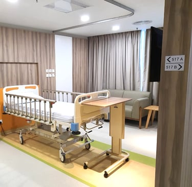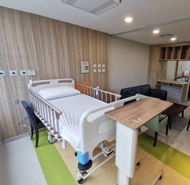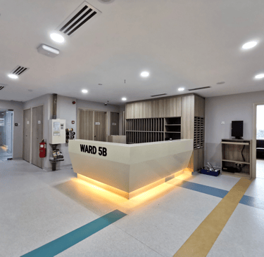 The renovation of Sri Kota Specialist Medical Centre focused on upgrading Wards 5A and 5B, with a total of 36 rooms fully renovated to provide a more comfortable and modern environment for patients. The rooms were redesigned with a focus on enhancing comfort and functionality, featuring contemporary finishes and improved facilities. Additionally, the lift area underwent a facelift, creating a modern and welcoming atmosphere for both patients and staff. This renovation aims to elevate the overall patient experience, combining modern design with comfort and accessibility.